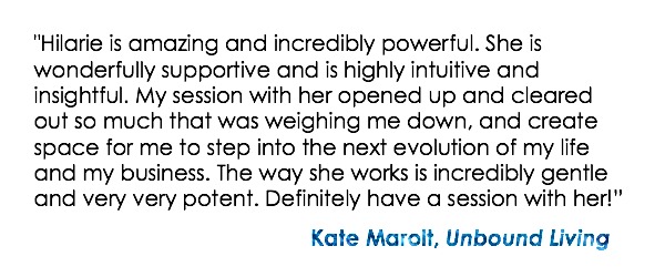“It’s a privilege and a blessing to work with Hilarie. She creates a warm and welcoming space (both in her heart and session room) to share and explore with ease and comfort. In her presence I feel fully seen, fully respected and fully supported. Each session builds upon the others and ripples out into my day-to-day life in both simple and profound ways. She has a gentle, knowing way and exudes the joy of someone who is doing exactly what she is meant to and the world is all the better for it.” – Michele R.